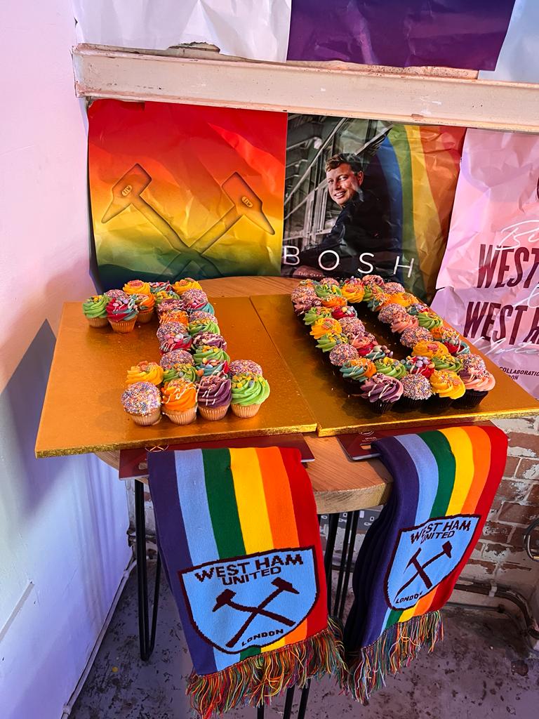 Joined by familiar, supportive faces such as Matt Jarvis, James Collins, Anton Ferdinand and (to our secretary’s delight) Kevin Nolan the pop-up bar was used for a pub quiz, a pre-game social spot and a place for Sky to film Danny Dyer posed in front of the neon hammers. Most importantly it allowed us to gather together to reflect on and be proud of how far we’ve come as a group and refocus our commitment to keep up the fight for genuine inclusivity in football and beyond.